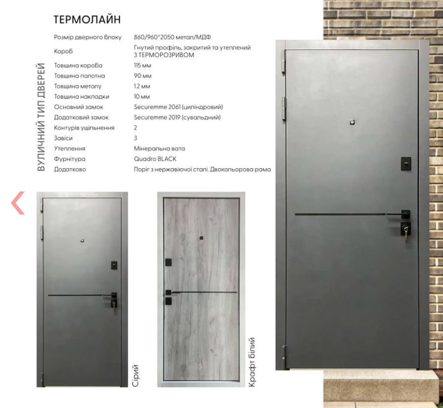 Двері вхідні металеві метал/мдф Меджік Термолайн сірий /крафт білий